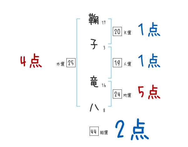 鞠子竜八さんの画数の鑑定結果