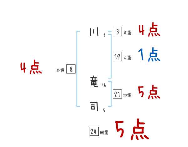 川竜司さんの画数の鑑定結果