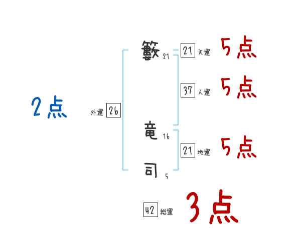 籔竜司さんの画数の鑑定結果