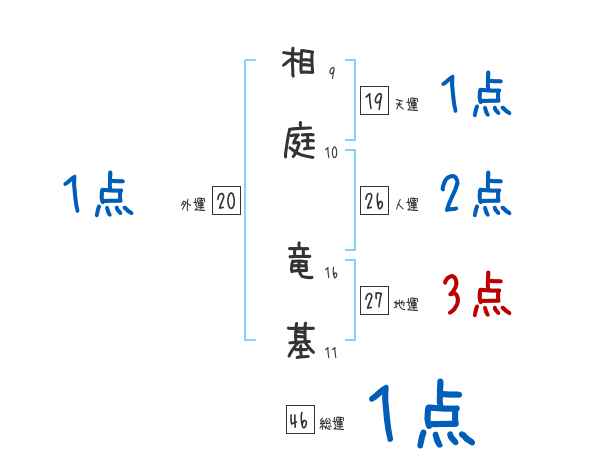 相庭竜基さんの画数の鑑定結果