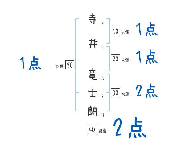 寺井竜士朗さんの画数の鑑定結果