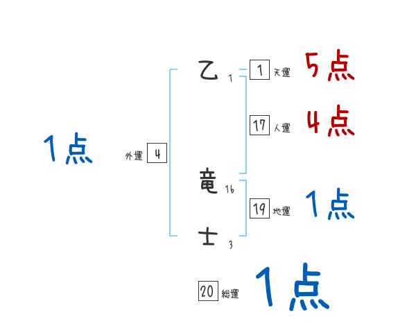 天運![]() | 乙竜士さんの天運は1画の5つ星!行動力、指導力があり出世し繁栄する。幸運に恵まれる。 家系が持つ宿命的な運勢を表します。祖先から受け継いだ苗字ですので自分の力が及びません。家柄を象徴します。 |