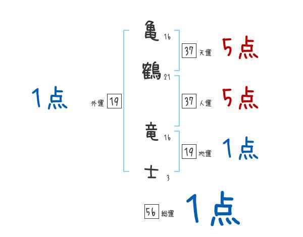 総運![]() | 亀鶴竜士さんの総運は56画の1つ星!消極的で無気力になりがち。誠実な気持ちが必要でしょう。 あなたの人生を表す1番重要な運勢です。生涯を通じて影響する総合運となり、主に50歳以降の晩年期に影響を及ぼします。 |