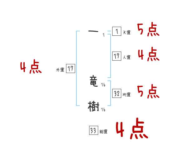 一竜樹さんの画数の鑑定結果