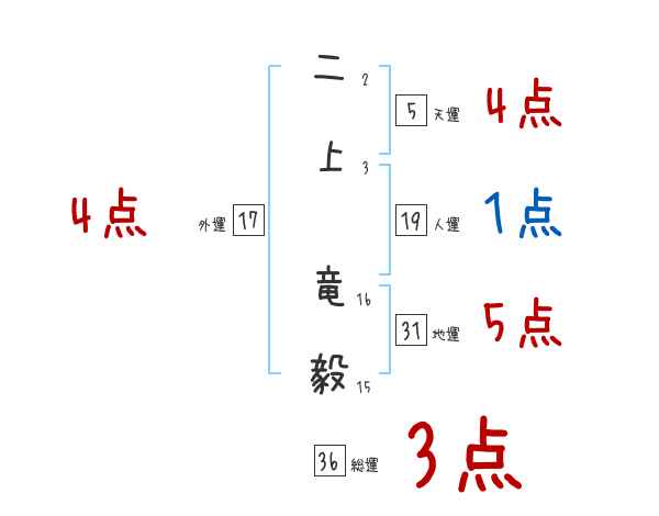 二上竜毅さんの画数の鑑定結果