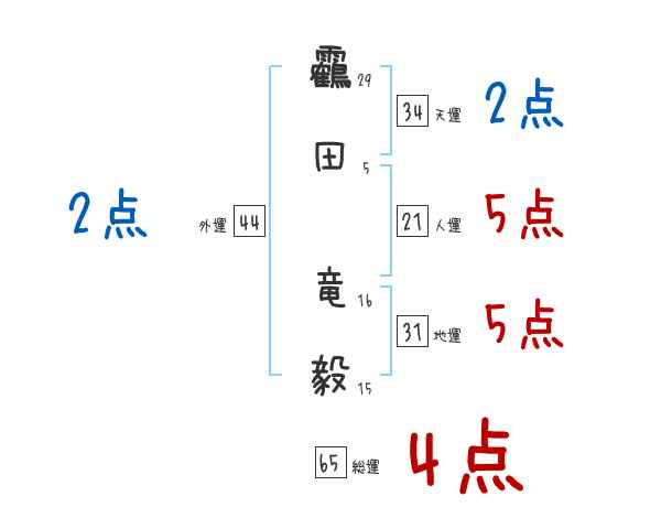 靏田竜毅さんの画数の鑑定結果
