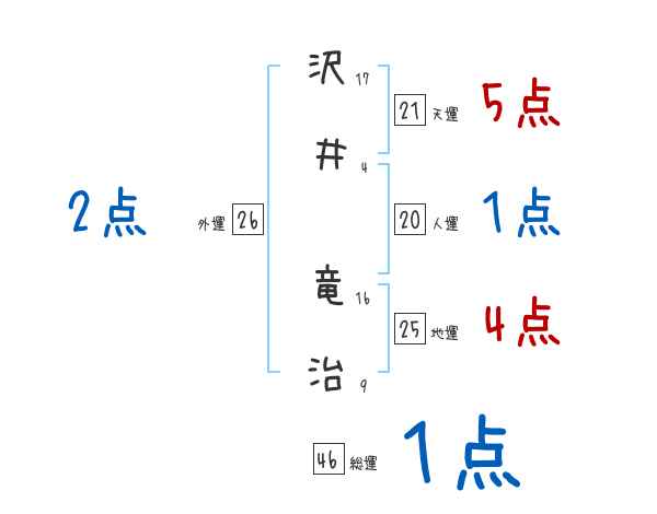沢井竜治さんの画数の鑑定結果