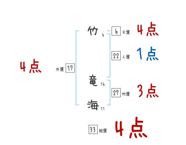 竹竜海さんの画数の鑑定結果