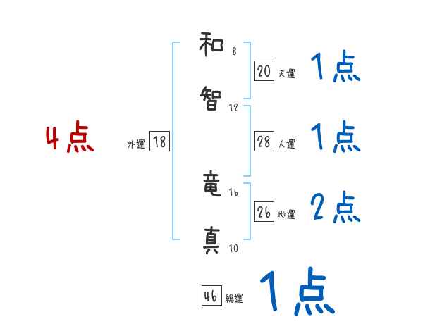 和智竜真さんの画数の鑑定結果