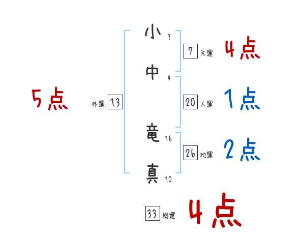 小中竜真さんの画数の鑑定結果