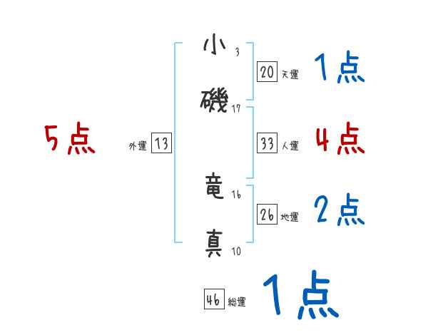 小磯竜真さんの画数の鑑定結果