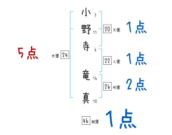 小野寺竜真さんの画数の鑑定結果
