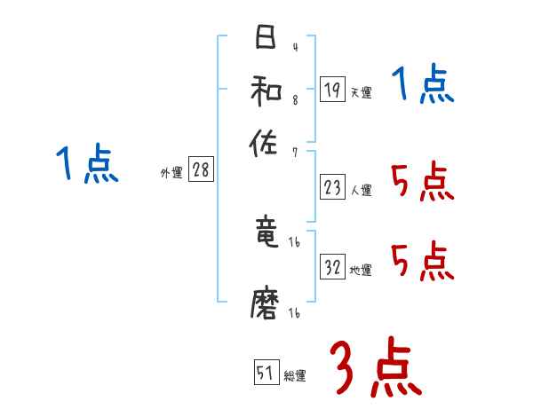 人運![]() | 日和佐竜磨さんの人運は23画の5つ星!想像力に優れ活力がある。一代で成功し名誉を手に入れる。 性格や才能などを表す2番目に重要な運勢です。人間関係や協調性、社会的な成功に影響します。主に20歳から50歳ぐらいまでの中年期の運勢を表します。 |