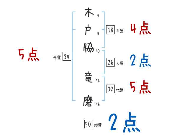 木戸脇竜磨さんの画数の鑑定結果