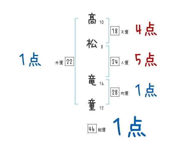 髙松竜童さんの画数の鑑定結果