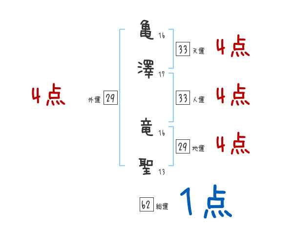 亀澤竜聖さんの画数の鑑定結果