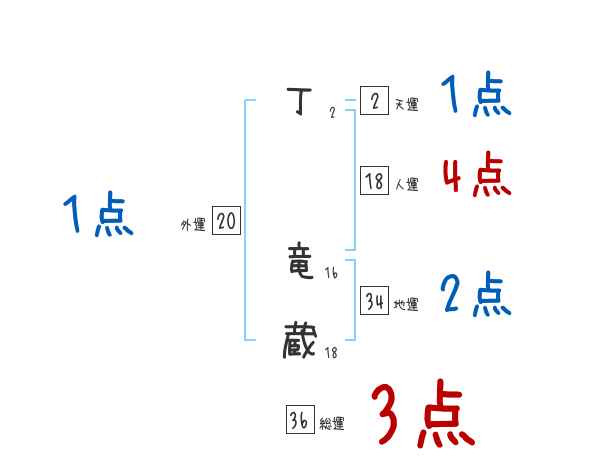 丁竜蔵さんの画数の鑑定結果