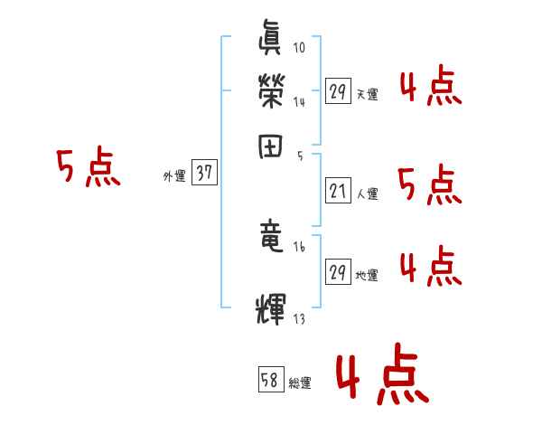 天運![]() | 眞榮田竜輝さんの天運は29画の4つ星!完全主義で才能がある。厳格な心の持ち主。 家系が持つ宿命的な運勢を表します。祖先から受け継いだ苗字ですので自分の力が及びません。家柄を象徴します。 |