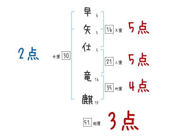 天運![]() | 早矢仕竜麒さんの天運は16画の5つ星!人望が厚く大きく発展する。逆転成功が見える。 家系が持つ宿命的な運勢を表します。祖先から受け継いだ苗字ですので自分の力が及びません。家柄を象徴します。 |