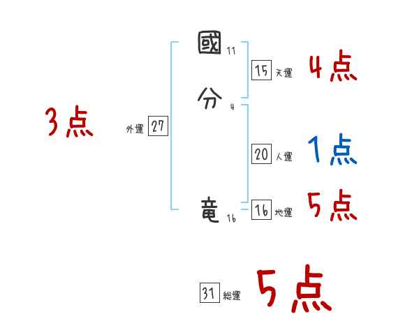 國分竜さんの画数の鑑定結果