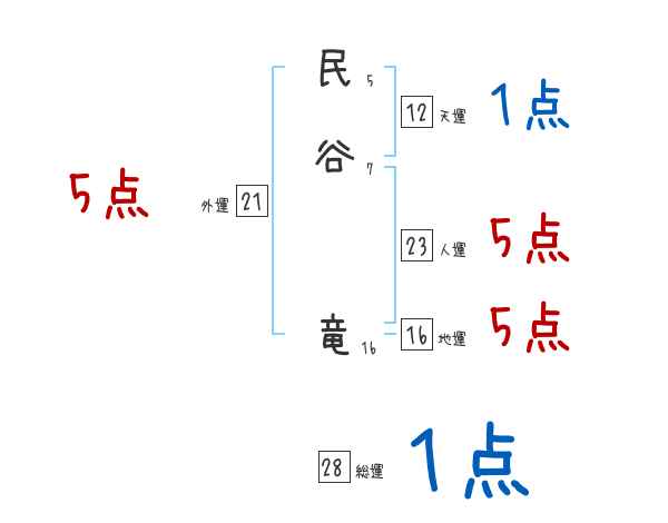 民谷竜さんの画数の鑑定結果