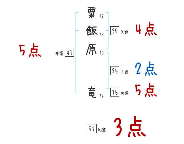 粟飯原竜さんの画数の鑑定結果