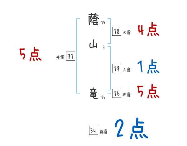 蔭山竜さんの画数の鑑定結果