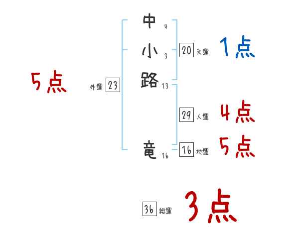 外運![]() | 中小路竜さんの外運は23画の5つ星!想像力に優れ活力がある。一代で成功し名誉を手に入れる。 生活面を象徴する運勢です。外部から受ける影響力を表し、結婚運、家庭運や職場、環境への順応性を表します。 |