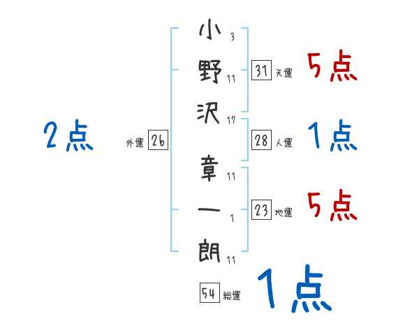 小野沢章一朗さんの画数の鑑定結果