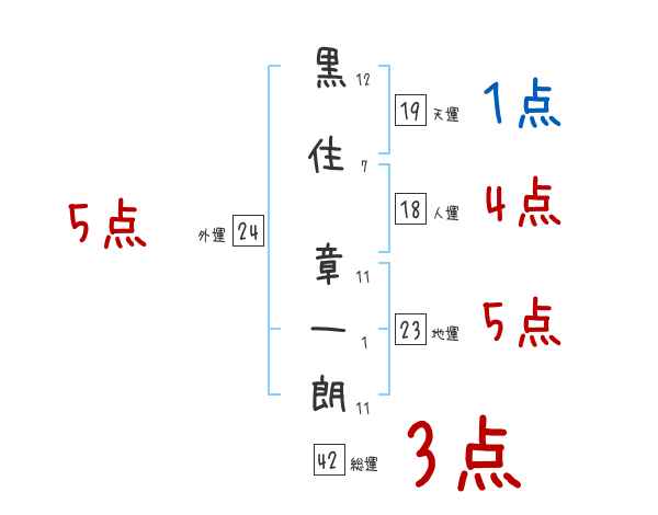 黒住章一朗さんの画数の鑑定結果