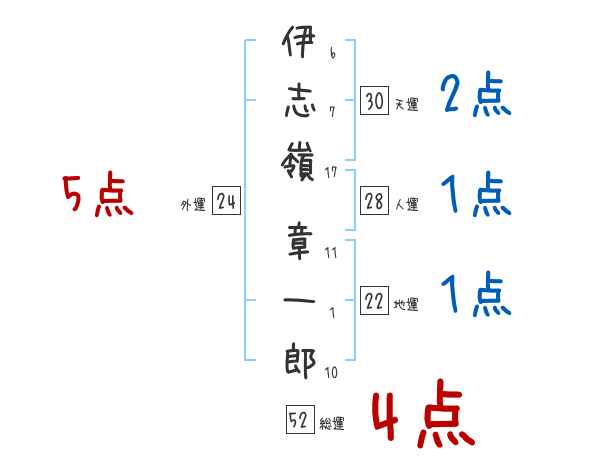 伊志嶺章一郎さんの画数の鑑定結果
