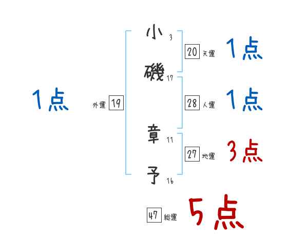 小磯章予さんの画数の鑑定結果