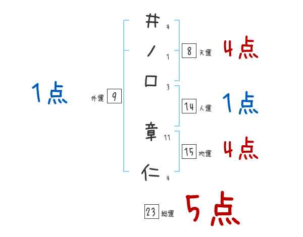 地運![]() | 井ノ口章仁さんの地運は15画の4つ星!人徳があり出世する。順調に物事を進め円満な人生。 個性を表す基礎的な運勢です。性格形成や対人関係、行動力など家庭環境に影響されます。主に誕生してから20歳くらいまでの若年期の運勢を表します。 |
