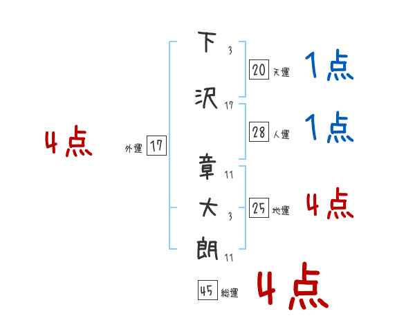 下沢章大朗さんの画数の鑑定結果