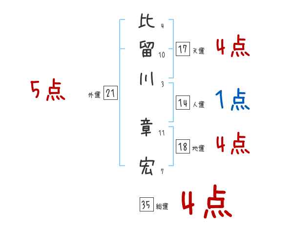 比留川章宏さんの画数の鑑定結果