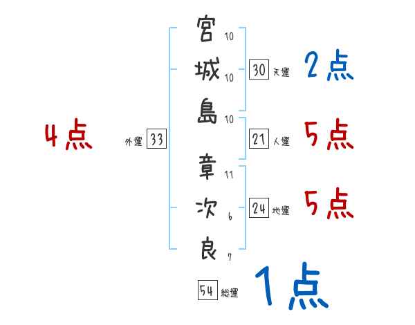 宮城島章次良さんの画数の鑑定結果