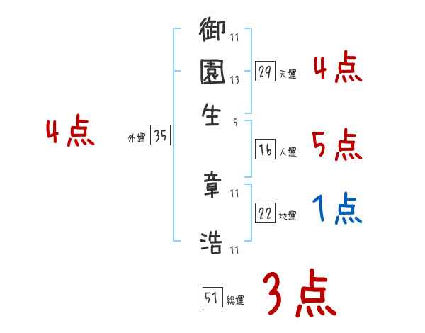 御園生章浩さんの画数の鑑定結果
