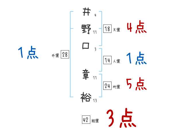 井野口章裕さんの画数の鑑定結果