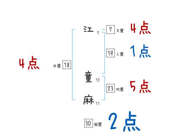 江童麻さんの画数の鑑定結果