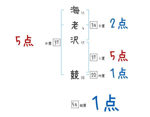 総運![]() | 海老沢競さんの総運は54画の1つ星!トラブルが多いかも。周りをよく見て協調して過ごしましょう。 あなたの人生を表す1番重要な運勢です。生涯を通じて影響する総合運となり、主に50歳以降の晩年期に影響を及ぼします。 |