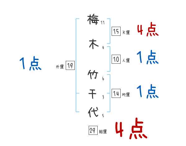 天運![]() | 梅木竹千代さんの天運は15画の4つ星!人徳があり出世する。順調に物事を進め円満な人生。 家系が持つ宿命的な運勢を表します。祖先から受け継いだ苗字ですので自分の力が及びません。家柄を象徴します。 |