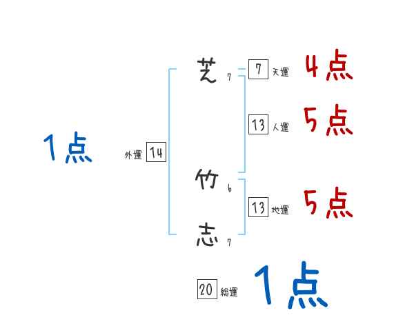 芝竹志さんの画数の鑑定結果