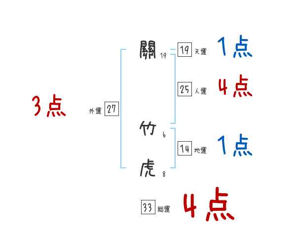 關竹虎さんの画数の鑑定結果