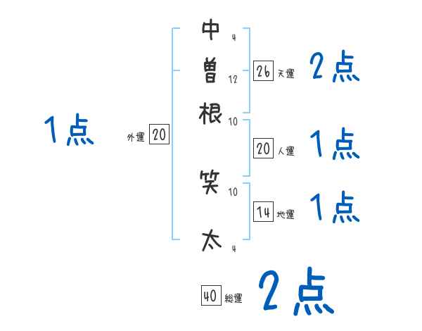 総運![]() | 中曽根笑太さんの総運は40画の2つ星!自信過剰で物事に固執するためトラブルに注意。 あなたの人生を表す1番重要な運勢です。生涯を通じて影響する総合運となり、主に50歳以降の晩年期に影響を及ぼします。 |