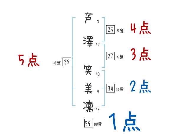 芦澤笑美凛さんの画数の鑑定結果