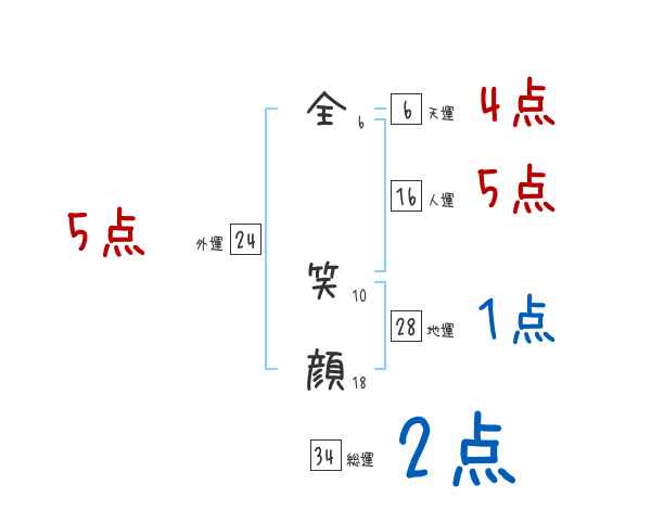 全笑顔さんの画数の鑑定結果
