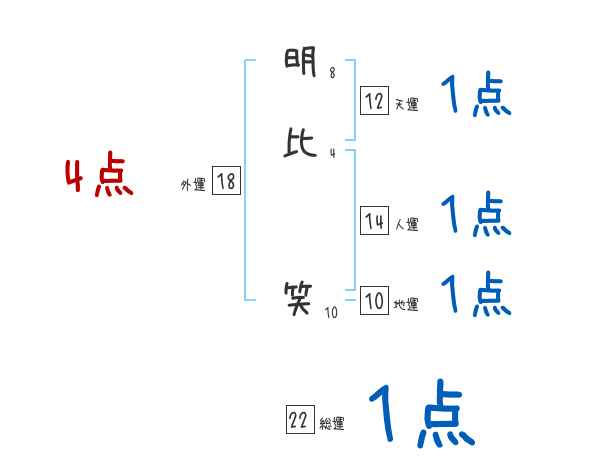 外運![]() | 明比笑さんの外運は18画の4つ星!情熱的で剛気。忍耐力があり信頼される。 生活面を象徴する運勢です。外部から受ける影響力を表し、結婚運、家庭運や職場、環境への順応性を表します。 |