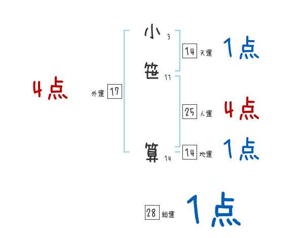 小笹算さんの画数の鑑定結果