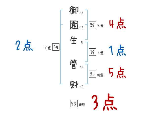 家系が持つ宿命的な運勢を表します。祖先から受け継いだ苗字ですので自分の力が及びません。家柄を象徴します。