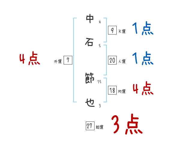 中石節也さんの画数の鑑定結果